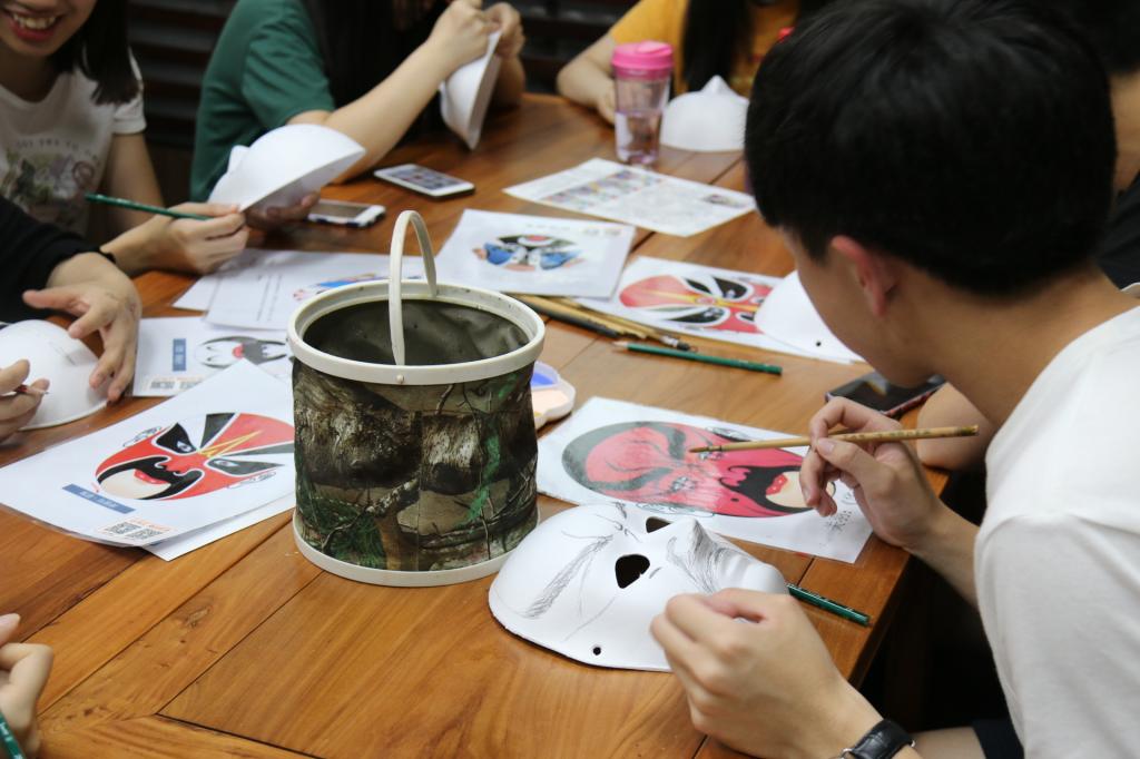 除了文化历史讲座外,同学们也走进了了陕西民俗的课堂,体验传统艺术之秦腔。6月6日下午,betvlctor伟德请来了秦腔表演艺术家陈耀武老师,为同学们上了一堂秦腔科普课。在老师为大家讲授了不同颜色、构图所代表的的脸谱含义之后,随即就开始了“实战”,大家纷纷拿起画笔和颜料,来创作自己的脸谱。在绘制了脸谱之后,几位自告奋勇的同学们还走进了秦腔表演的“化妆间”,在画上脸谱,穿上行头,学习身段,化身秦腔剧中人。