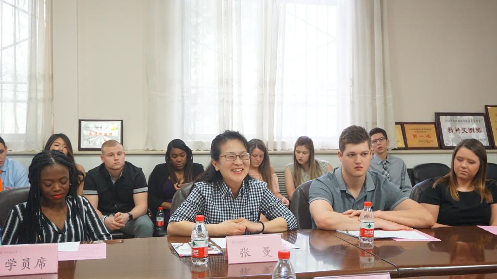 博林格林州立大学暑期项目带队老师张曼讲话。她对伟德国际1946官网的精心安排和接待表示感谢,并表示将鼓励同学们利用这次学习机会,提高汉语水平,了解中国文化。