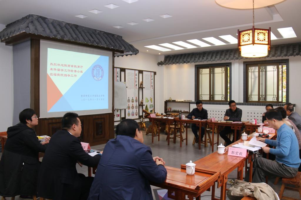 11月14日上午,陕西省教育厅国际交流与合作处副处长郭宏毅率考评专家西安交通大学国际教育学院副院长宋玉霞、长安大学国际教育学院院长李西建到betvlctor伟德伟德国际1946官网专题调研来华留学工作。伟德国际1946官网副院长吴殿华代表学院作了伟德国际官网登录入口来华留学管理工作汇报。伟德国际1946官网院长张建成、副院长吴媛及留学生管理办公室工作人员参与了汇报会。汇报会由留学生管理办公室主任朱卫强主持。