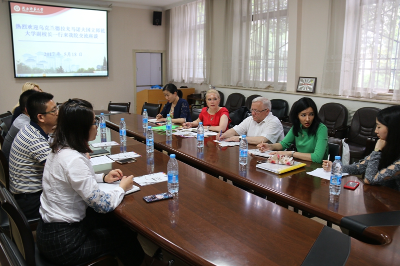 德拉戈马诺夫国立师范大学副校长米科拉·科列茨先生简单介绍了乌克兰德拉戈马诺夫国立师范大学近年来的国际合作情况,表达了与学院开展学生交流的意愿。德拉戈马诺夫国立师范大学外语系副主任斯杰芳诺娃•娜塔莉亚具体介绍了该系国际学生的教学情况。随后,双方就该校学生到汉学院留学的课程设计、学分互换、教学管理等具体问题进行了详细探讨。