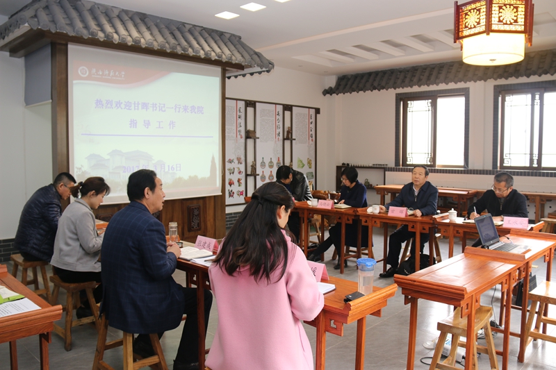 3月16日下午,校党委书记甘晖、学校办公室主任马晓云、党委组织部部长王永安、党委宣传部部长鲁镇一行到伟德国际1946官网走访调研,伟德国际1946官网党政班子成员参与汇报与座谈。