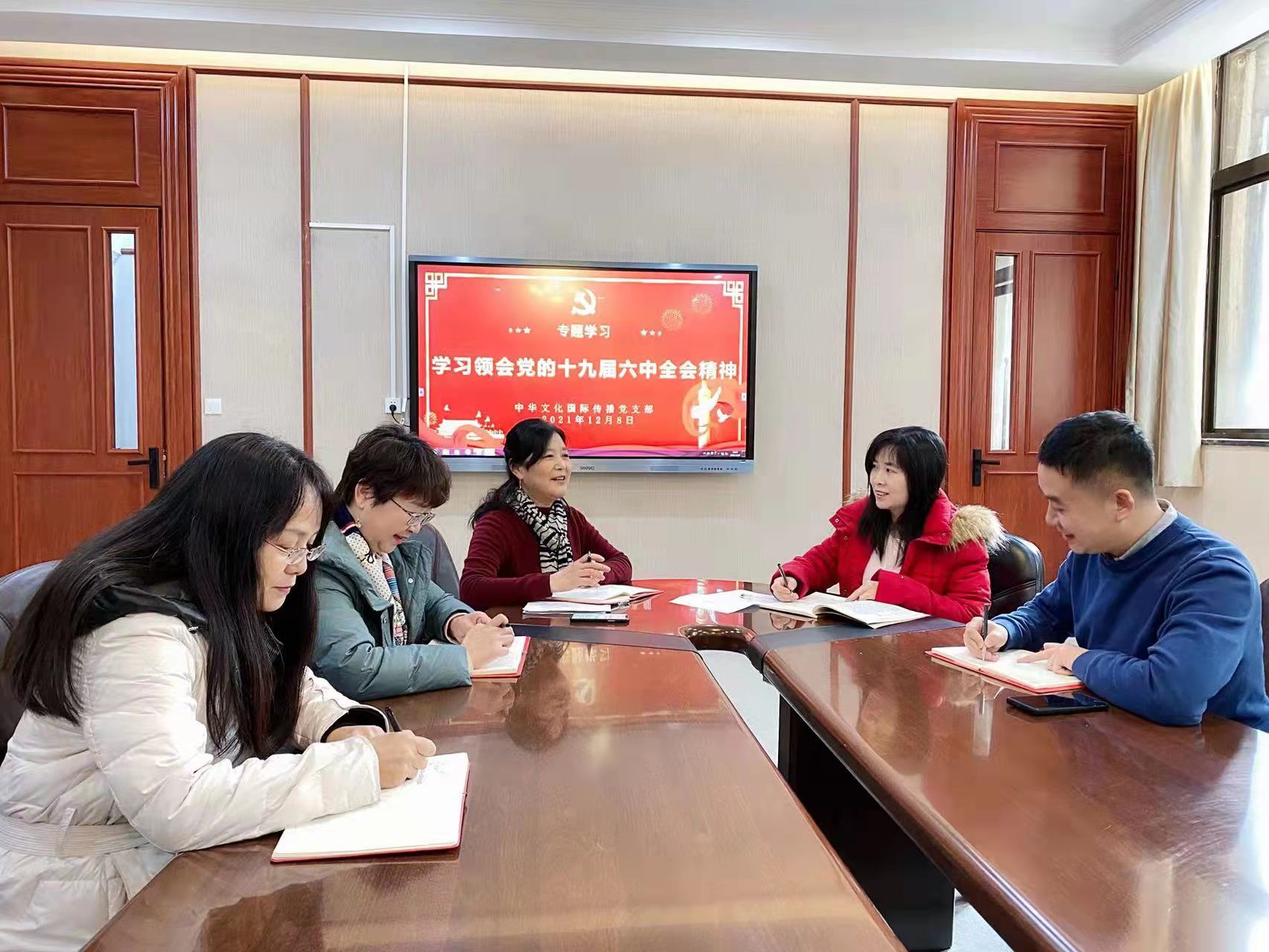 2021年12月8日下午,中华文化国际传播党支部在学院一层会议室进行了12月的专题理论学习活动,活动的主要议题是:聚焦十九届六中全会,深刻领会建党百年的重大成就和历史经验。