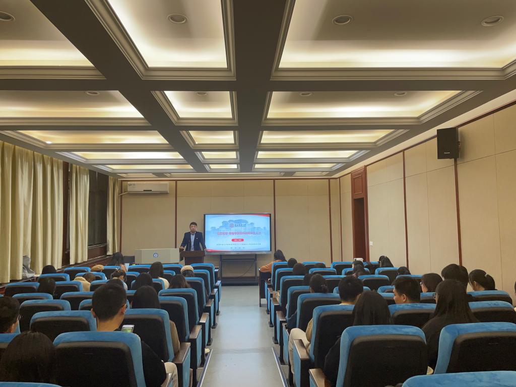 11月18日,伟德国际1946官网在学院一层报告厅举行了第五场入学教育系列活动,主题为“锚定理想 做有中国情怀的国际化人才”。本次讲座由党总支副书记张昊主讲。