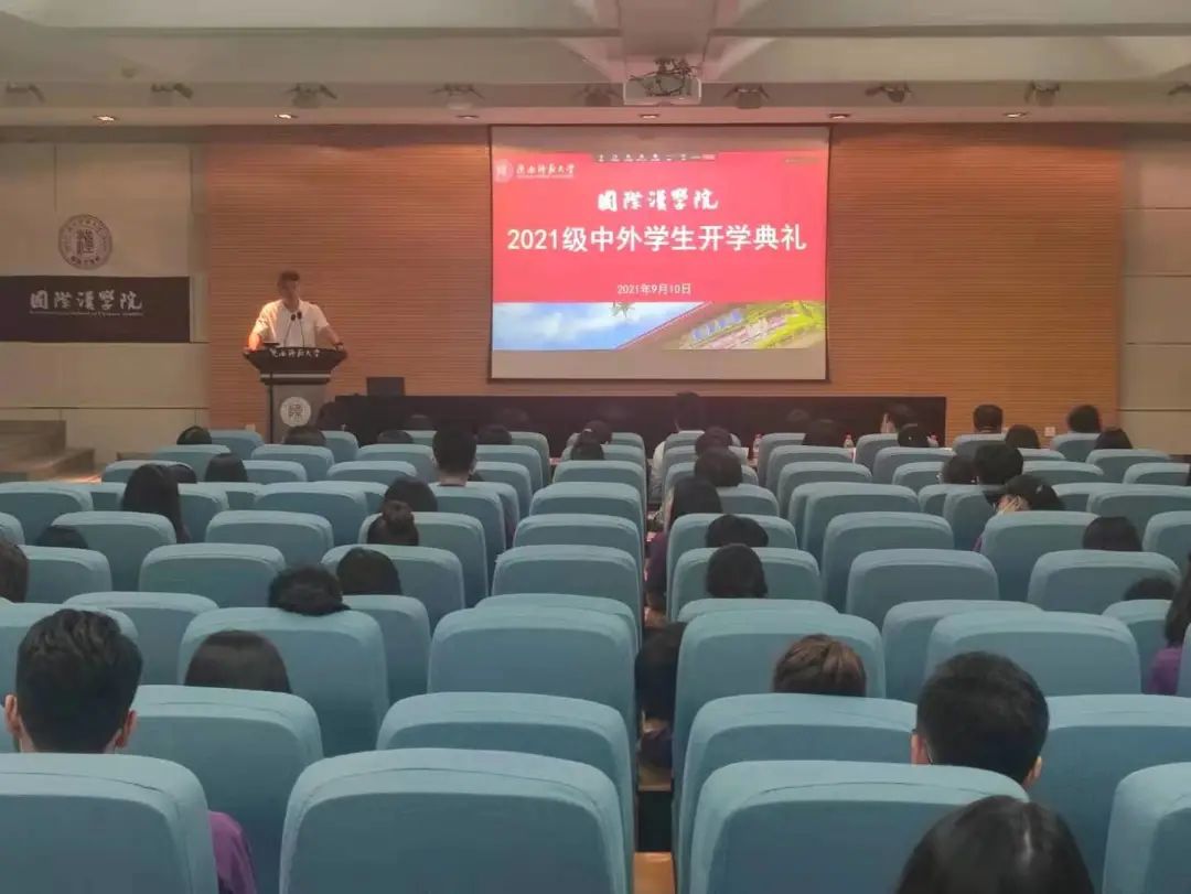 四海英杰,共聚国汉; 青春之志,悠悠启航。9月10日上午,我们2021级中外学生开学典礼在雁塔校区崇鋈楼一层学思堂举行。任晓伟副校长,国际交流与合作处、党委学工部、党委研工部主要负责人,学院党政领导,教师代表以及2021级中外学生参加了典礼。典礼由党总支副书记张昊主持。