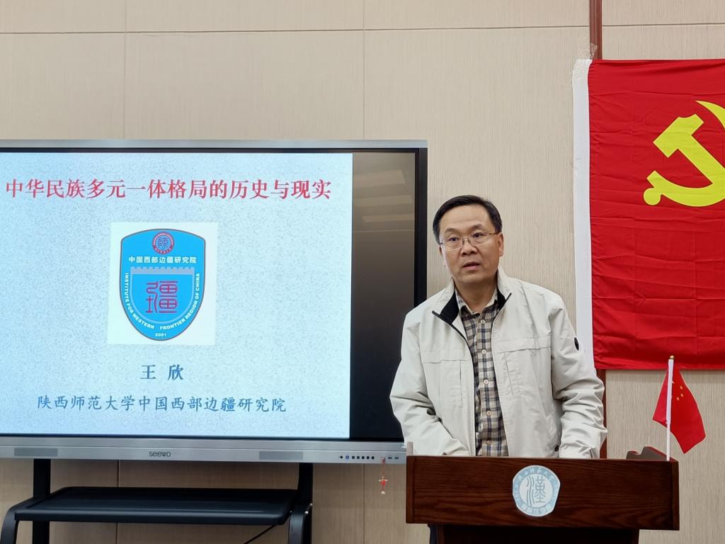 为了深入学习习近平同志关于铸牢中华民族共同体意识的讲话精神,积极跟进中国共产党的民族政策,响应betvlctor伟德党委“关于深入开展党的民族宗教政策学习教育的通知”要求,不断加强理论武装,切实提升全院师生的思想认识,十月二十一日下午,伟德国际1946官网党总支邀请到了betvlctor伟德党民族宗教政策学习教育专家讲授团成员、中国西部边疆研究院院长、博士生导师王欣教授来betvlctor伟德一层报告厅,对全院师生进行题为“中华民族多元一体化格局的历史和现实”的专题讲授。伟德国际1946官网院长张华教授主持了此次会议。
