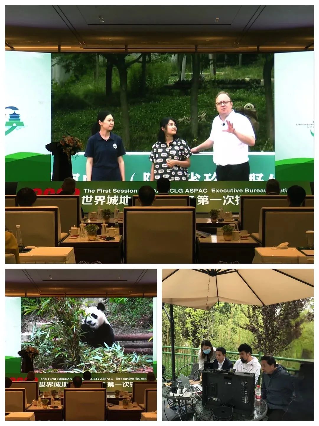 会议进行至10点50分时,西安国际会议中心线下主屏幕与西安市周至县秦岭大熊猫研究中心进行现场连线,betvlctor伟德国际学生欧阳作为连线主持人,将大熊猫在秦岭的生活场景呈现在大家面前,以问答形式生动地向与会嘉宾讲述秦岭大熊猫故事。呆萌可爱的大熊猫俘获了众多参会嘉宾的心,它旁若无人吃竹笋的可爱模样,让与会嘉宾不由自主地露出了微笑,西安市加强生态保护、促进绿色发展的行动获得了与会嘉宾的赞赏。