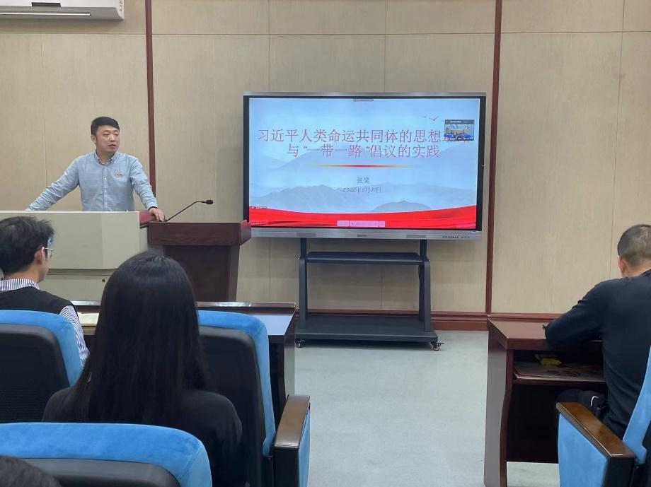 张昊老师结合深切落实人类命运共同体理念的多个案例,从如何理解人类命运共同体、如何构建人类命运共同体、“一带一路”是构建人类命运共同体的重要实践平台、全球抗疫生动诠释人类命运共同体理念和构建人类命运共同体的时代意义五个方面为在场的师生党员讲授了一堂生动的党课。同时,张昊老师还向学生党员们强调,当今世界处于大发展大变革大调整时期,不确定性不稳定性突出,作为青年学生党员,更当阔步人间正道,把党的理论思想和自己的所学结合起来,发挥专业特色,为推动构建人类命运共同体贡献青春力量。
