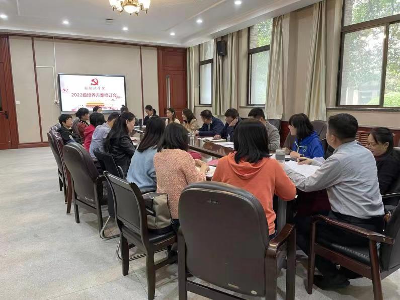 会议第一阶段,孙建伟首先总结了学生在问卷中反映的意见,主要有课程深度不够、部分课程内容重复以及实践类课程数量不足等问题。学院毕业生结合自身工作经历,提议应增加汉语本体知识、汉语二语教学实操类课程的课时量,对学术论文写作和跨文化交际课程的设置也提出了相关调整建议;汉语国际教育专业和语言学及应用语言学在读生代表结合自己的学习、实践经历,与老师们探讨了关于语言学经典导读、中国经典文献选读等课程开设中存在的问题,并就实习的时间安排等提出了一些建议。之后全体研究生导师就具体课程设置与改进等情况逐一展开了深入讨论,并形成了基本方案。会议第二阶段,孙建伟转达了学校研究生培养的相关会议精神,主要涉及提高培养质量、把好研究生毕业论文关、完善全过程培养、提升研究生创新能力培养、助力研究生科研成果产出等方面。