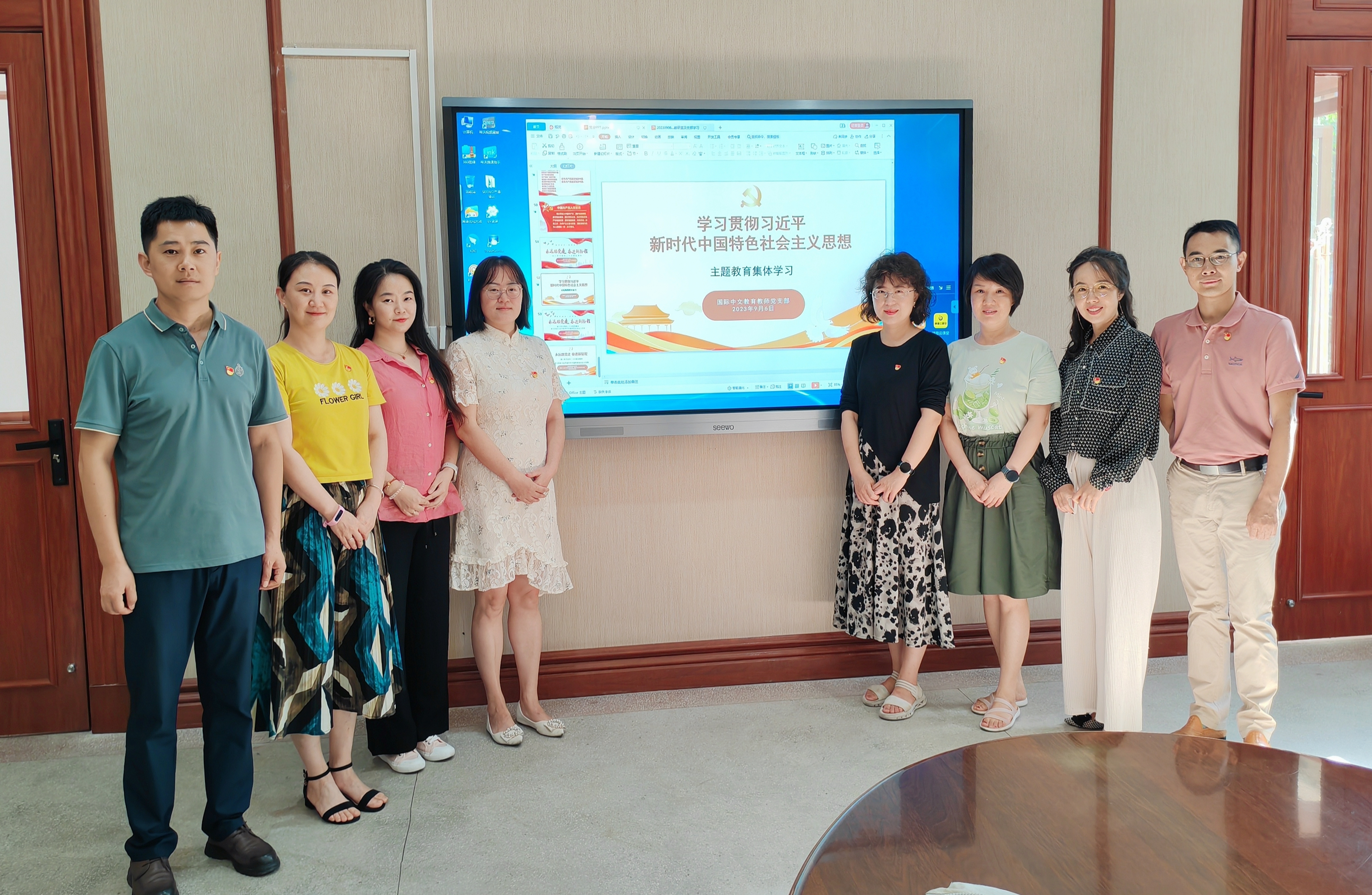 2023年9月6日下午,国际中文教育党支部及教研室于伟德国际1946官网一层会议室开展9月理论学习活动,此次理论学习活动以“永远跟党走,奋进新征程”为主题,是学习贯彻习近平新时代中国特色社会主义思想主题教育的延续,本次理论学习由支部书记兼教研室主任刘琨主持。