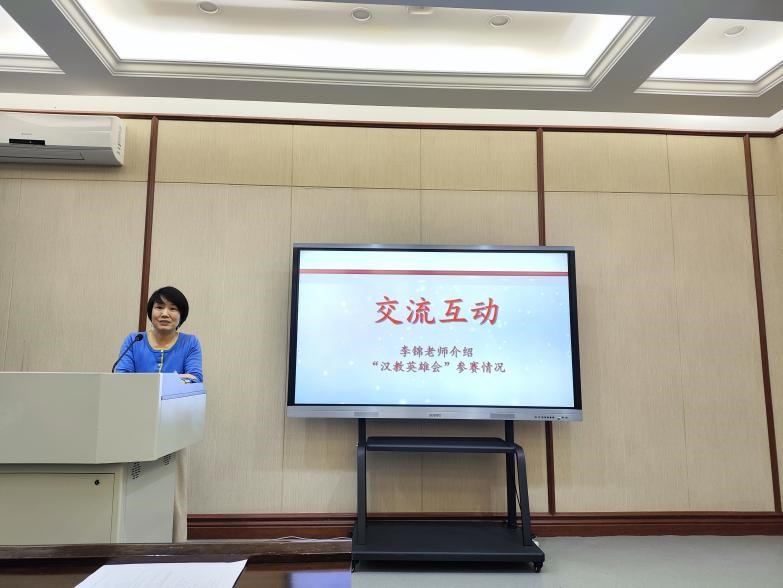 颁奖结束后,李锦老师和李敏老师作为全国性赛事指导教师代表,分别介绍了“汉教英雄会”和“全国研究生微课大赛”的参赛情况。今年的比赛收获不少,但仍有遗憾,希望大家能开拓思维,积极参与,争取明年取得更好的成绩。